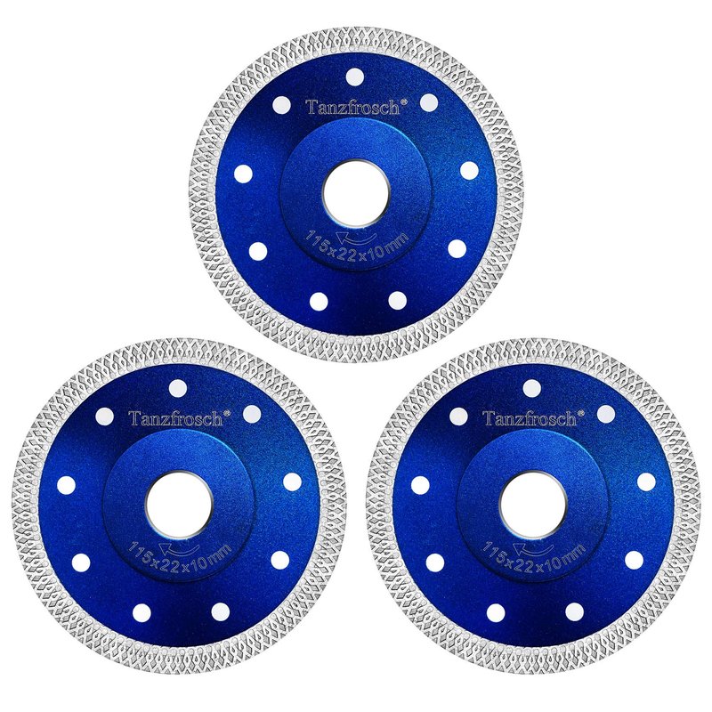 Tanzfrosch 4.5 inch Diamond Saw Blade 4.5" Cutting Disc Wheel for Cutting Porcelain Tiles Granite Marble Ceramics Works with Tile Saw and Angle Grinder (3 Pack, Blue)