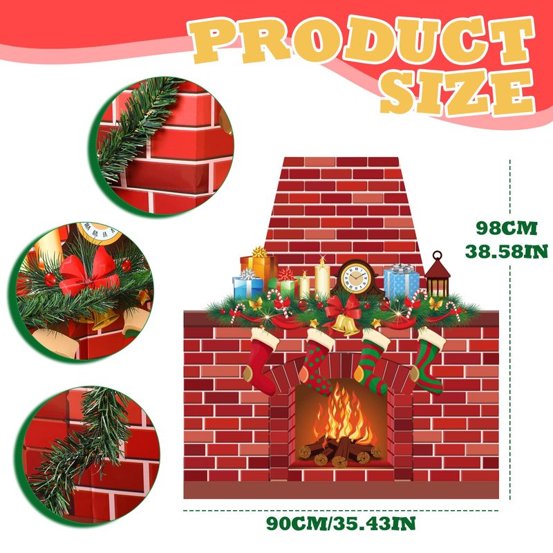 - Infuse a festive breathing: our Christmas fireplace decorations adopt the design of fireplace, along with many classic elements, such as stockings, present boxes, candy canes and so on, full of the breathing of Christmas, enhancing an intense festive atmosphere in your home