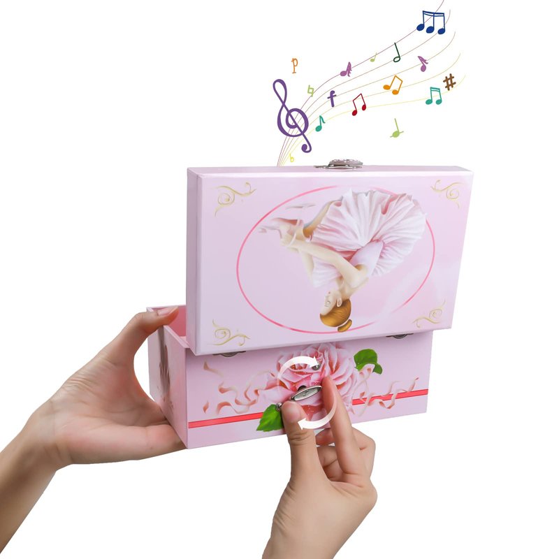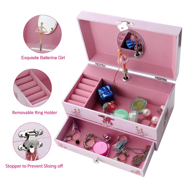TAOPU Sweet Musical Jewelry Box with Pullout Drawer and dancing Ballerina Girl Figurines Music Box Jewel Storage Case for girls