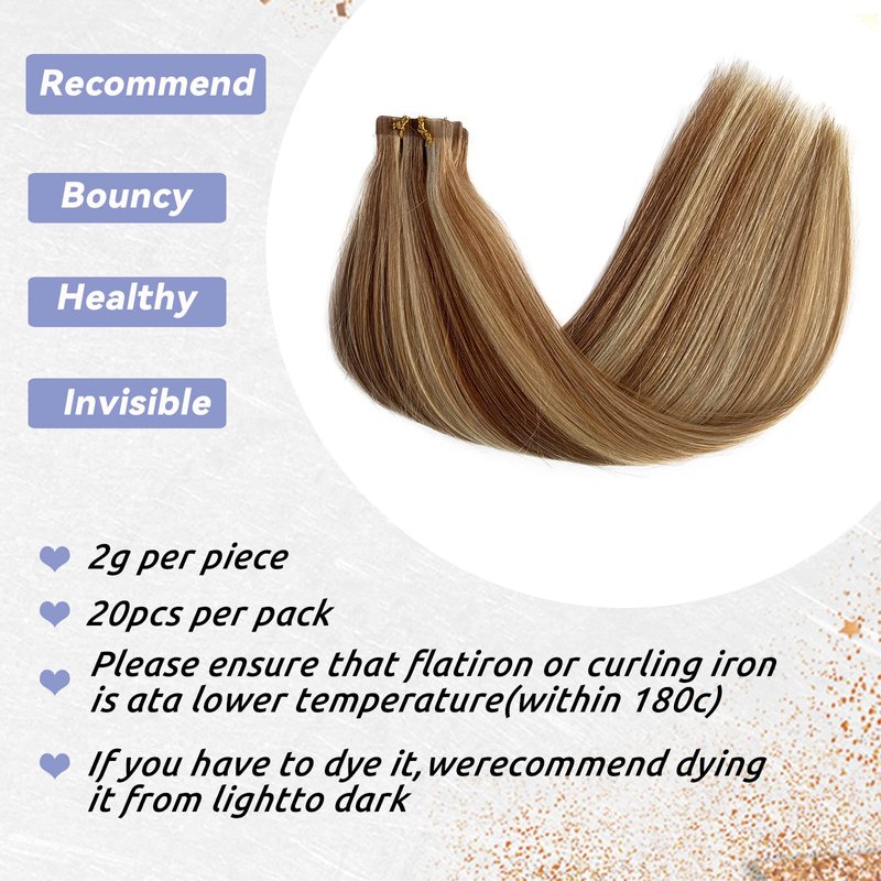 - 【High Quality Remy Human Hair】Tape in human hair extensions with Guaranted 100% remy human hair. Tangle free, no shedding,It's comfortable for customers to use. The hair doesn't change color after washing. It can be used for a long time,Multiple color options available. There is always one color for you,Our tape in hair extensions can be curled within 350℉.
