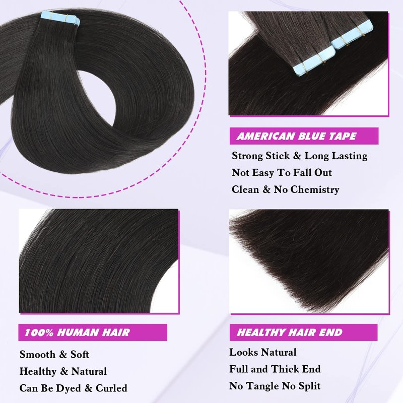 - 2.【High Quality Hair & Comfortable to Wear】9A Grade 100% brazilian human hair extensions. Natural silky appearance and soft touch, shiny, no tangles, no shedding. Easy to install and remove, the tape is thin and light, without pressure, it is perfectly attached to your scalp without any discomfort or injury.