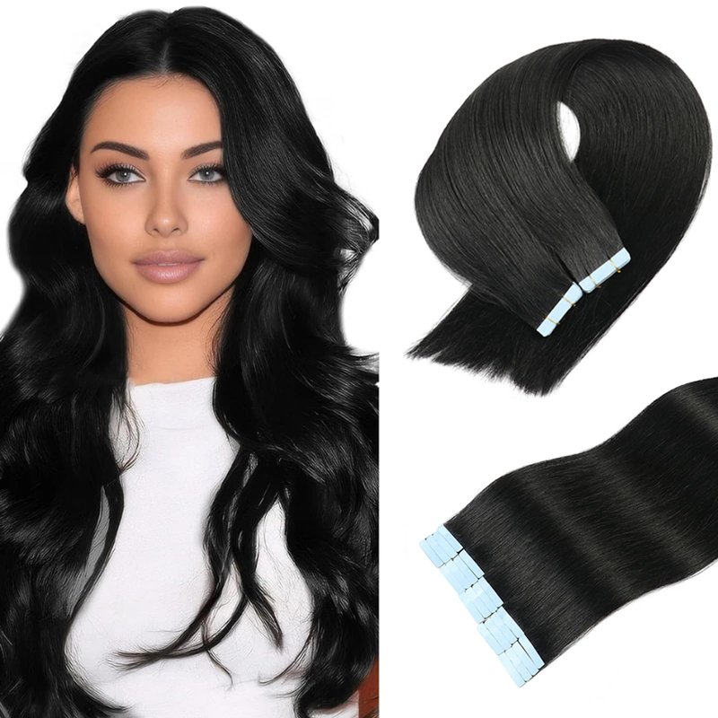 Tape in Hair Extensions Human Hair 100% Real Remy Human Hair Extensions Seamless Straight Hair extensions Real Human Hair Tape in Extensions 10 Inch 20Pieces 40g/Set #1 Jet Black