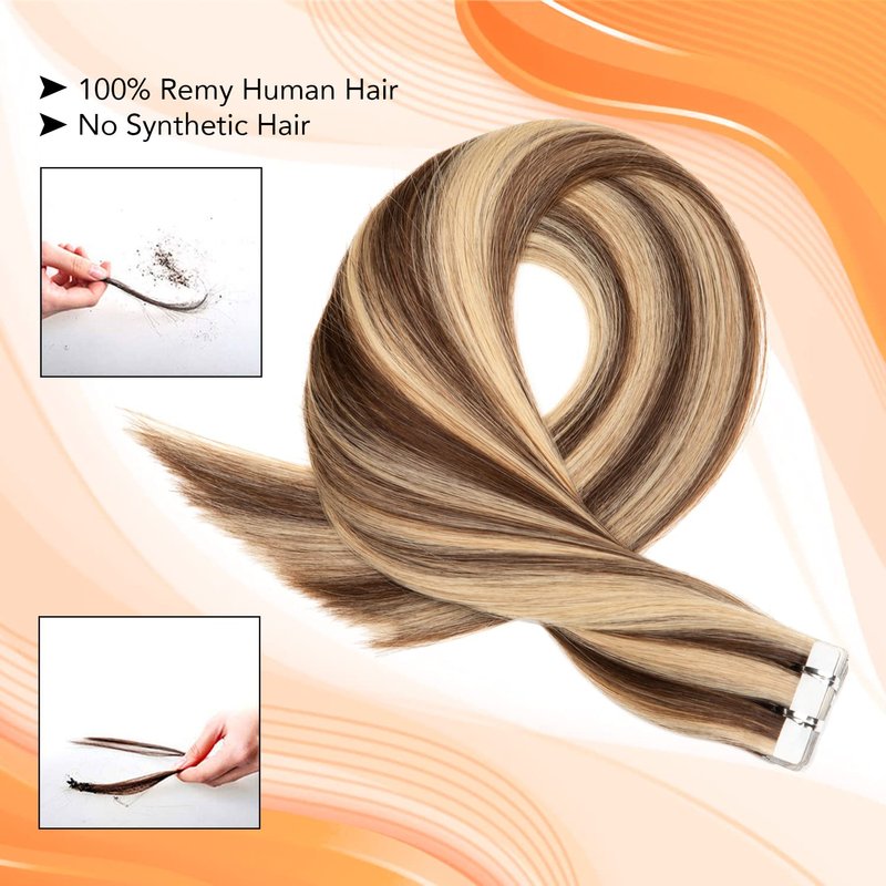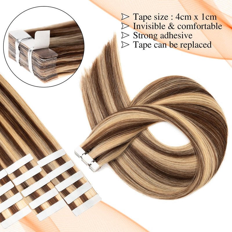 Tape In Hair Extensions Human Hair Medium Brown Mixed with Bleach Blonde #4/613 Real Human Hair 20 Inch Tape In Extensions 20pieces 50g/Pack Invisible Tape Extensions Remy Human Hair