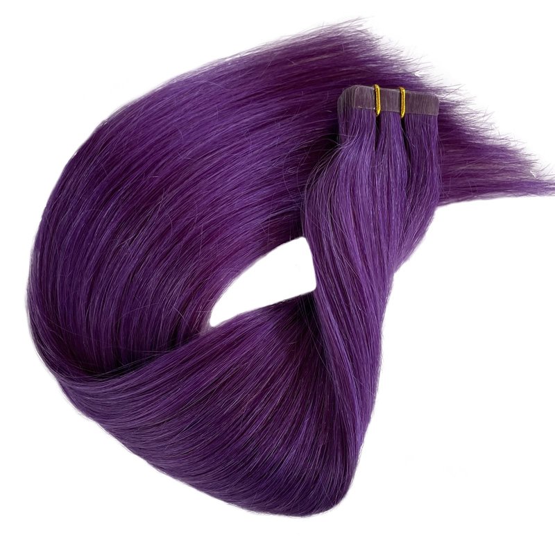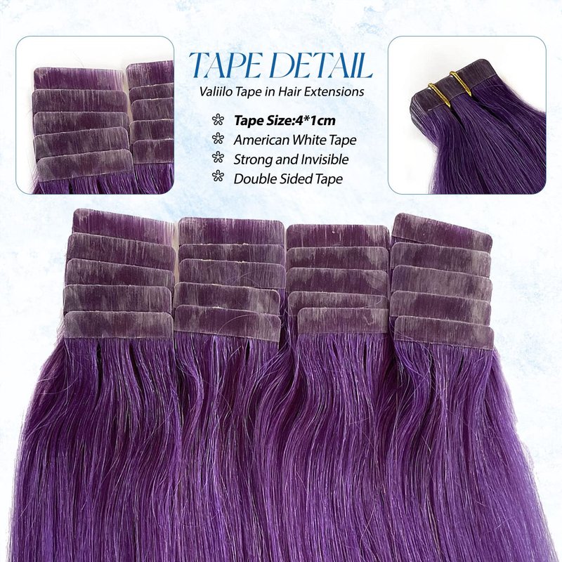 Tape in Hair Extensions Real Human Hair Purple Invisible Remy Hair 14 inch Tape Hair Extensions Seamless Skin Weft Extensions 20pcs 30g for White Women