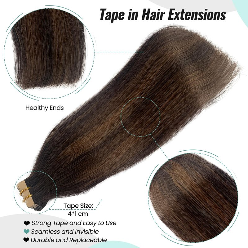 - The Best Variety of Colors to Choose From: balayage brown tape in extensions are soft and silky smooth, even after multiple washes(we've tested); this color is dark brown mix chestnut brown, blends well with brown highlights straight hair or wavy styles, way more affordable and meet all your demands for tape in hair; we have more than 30 different colors for solid, balayage, balayage highlights or highlights hair and you can always find one here to match your own hair