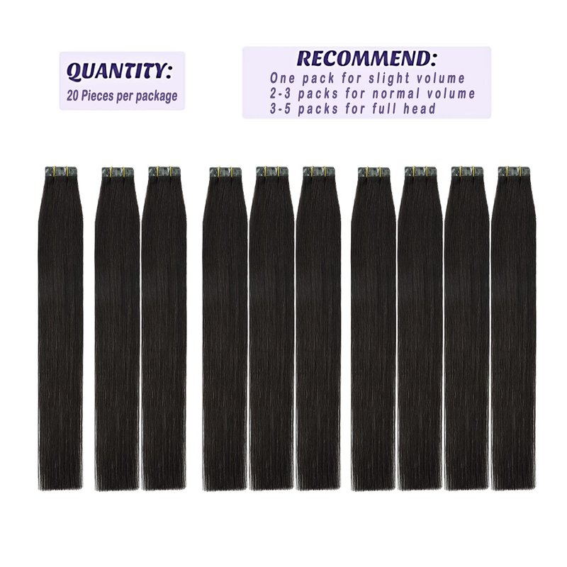 Our products are high-quality 8A human hair in packs of 20. It is seamless straight, and a natural wave after washing is normal. We have our factory and brand, so we can offer you the best price. Remy human hair extension with adhesive tape. Remy hair extension with color Jet black, dark brown, natural black, and platinum blonde, which can be dyed. Our tape is high-strength hypoallergenic invisible tape as well as very sticky.