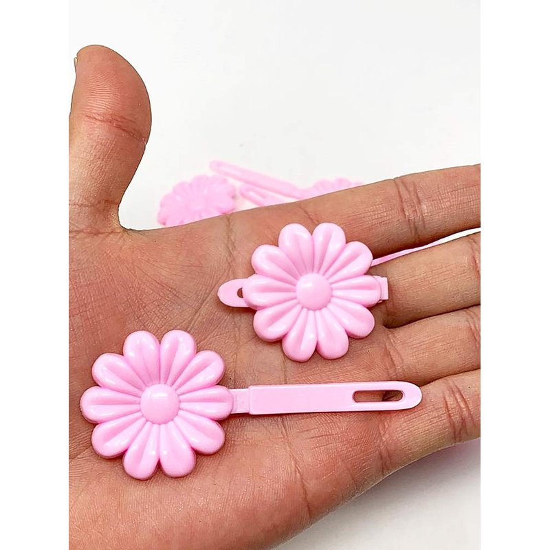 Tara Girls Self Hinge Plastic Flower Hair Barrettes 18 Pieces Selection (Light Pink)