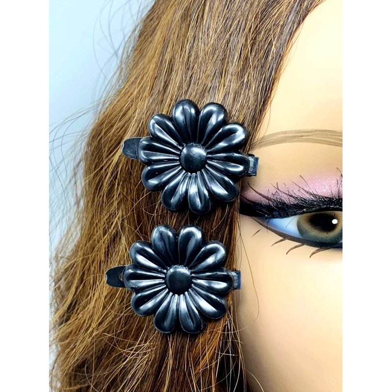 Tara Girls Super Cute Self Hinge Plastic Mulit Design Hair Barrettes Selection. 18 pc N.Sunflower(Black). Flower size 1.25 inch * 1.25 inch