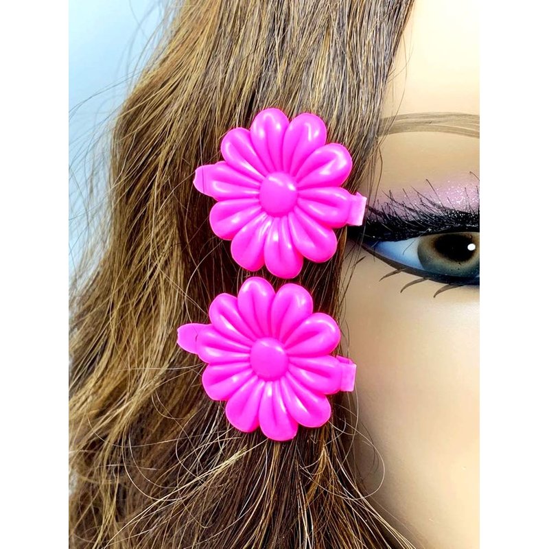 Tara Girls Super Cute Self Hinge Plastic Mulit Design Hair Barrettes Selection. 18 pc N.Sunflower(hot pink Pink). Flower size 1.25 inch * 1.25 inch