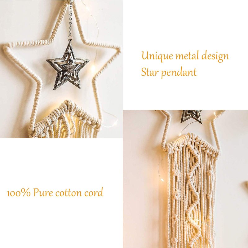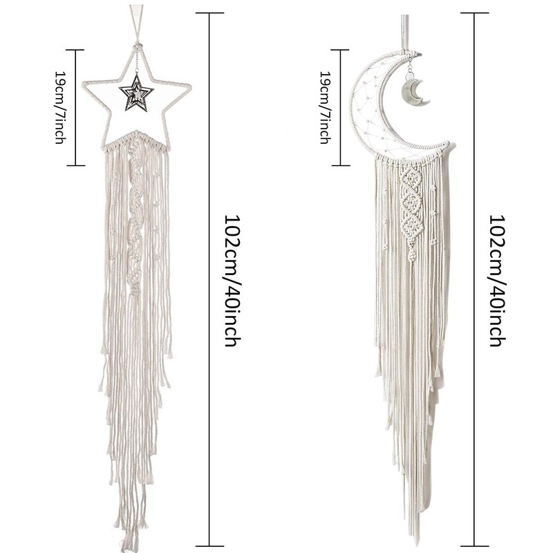- 【Material】 Moom Macrame Wall Hanging is made of 100% Pure cotton cord, Sturdy, durable and premium quality,metal star and moon circle,hollow-out moon and star pandant.