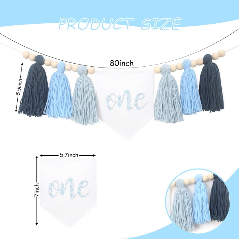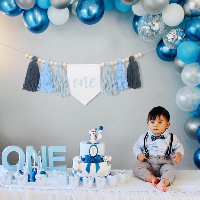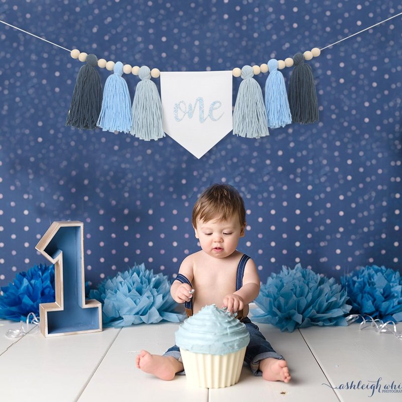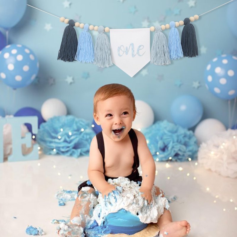 Tassels High Chair Banner For 1st Birthday,First Birthday Party Decorations,Baby Boy 1st Birthday Banner,Cake Smash Backdrop Banner,Rustic Theme 1st Birthday Decorations (Blue)