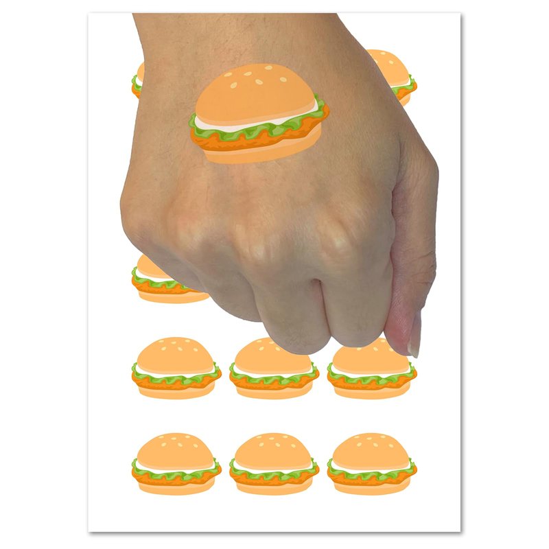 Tasty Chicken Sandwich Burger Fast Food Temporary Tattoo Water Resistant Fake Body Art Set Collection - 15 2" Tattoos (1 Sheet)