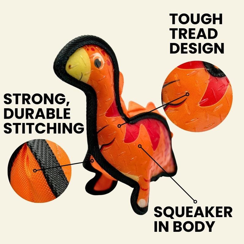 Tater's Choice Dinosaur Squeaky Dog Toy, Strong Stitching, Interactive Play, Medium (Orange)