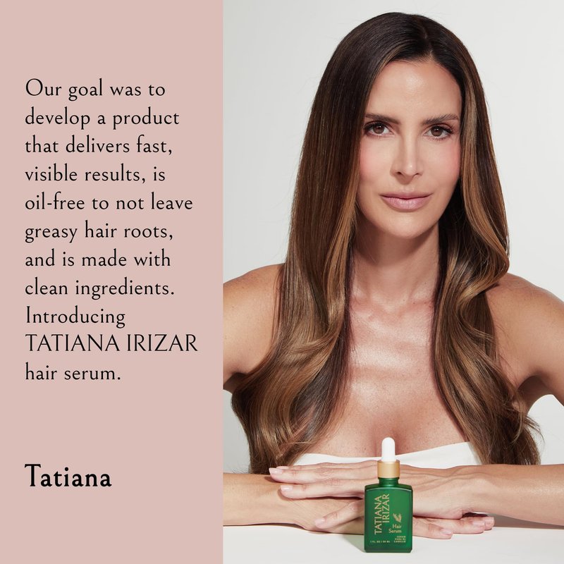 - 𝐕𝐄𝐆𝐀𝐍 & 𝐂𝐑𝐔𝐄𝐋𝐓𝐘-𝐅𝐑𝐄𝐄: TATIANA IRIZAR hair serum is a cruelty-free formula. This original vegan formula nourishes the follicular ecosystem and scalp to support and enhance healthier hair.