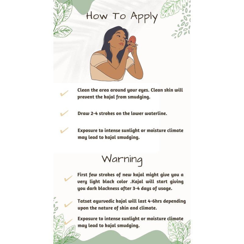 - No mineral colors/parabens or preservatives are added to it.Warning:keep away from sunlight or hot climate to avoid kajal melting.
