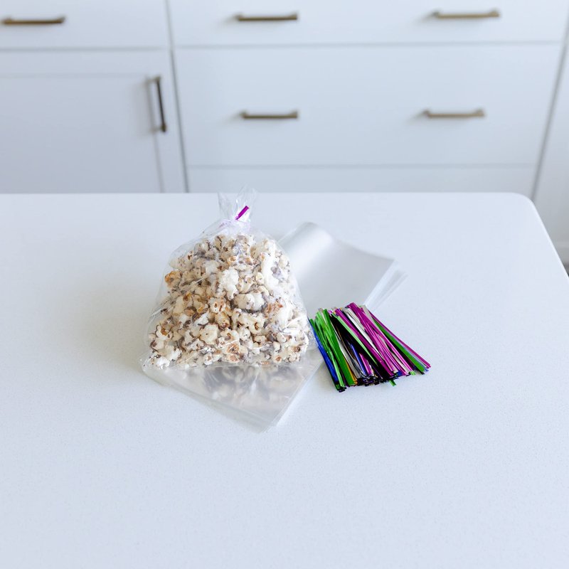 - ✂️PRODUCT INFO! These 4x9 clear plastic bags come with our new 5 inch Colorful Twist Ties! a playful array of 6 different colors that will jazz up any occasion - whether it's a fancy adult affair or an epic kid's party!