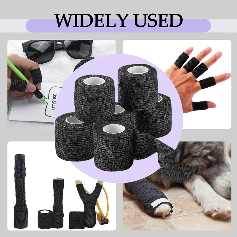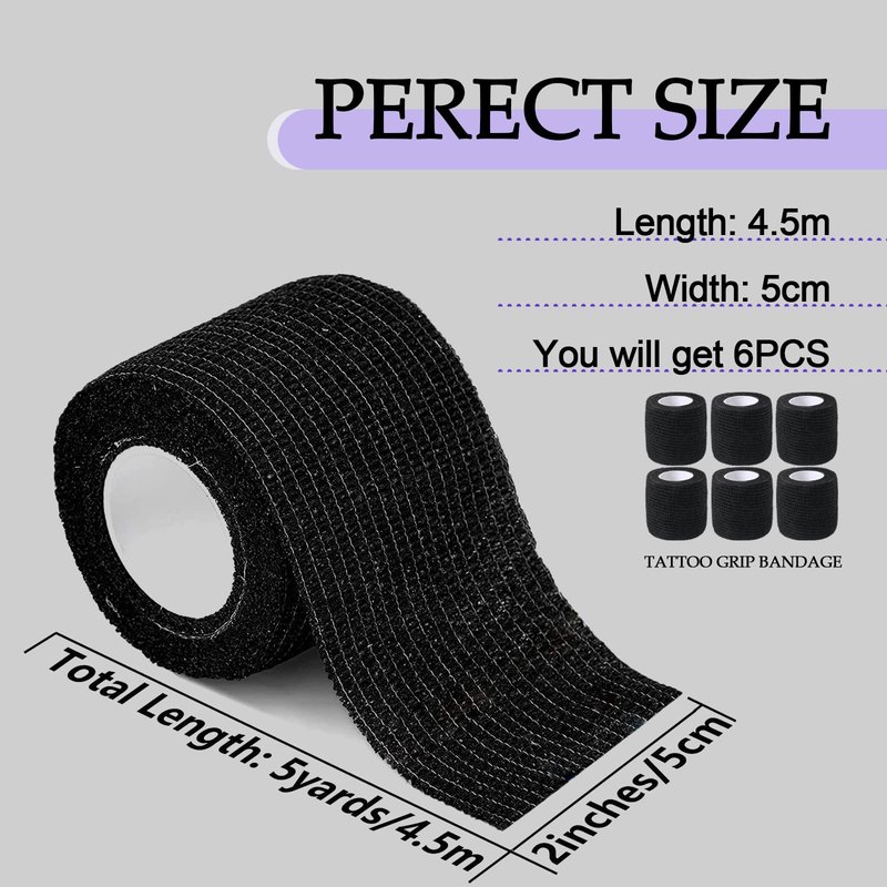 - PACKAGE INCLUDES - 1 package includes 6 rolls of black disposable self- adherent grip cover wrap tapes. Size of each roll of tattoo grip tape bandages is 2 inches x 5 yards/ 5 cm x 4.5 m. Single package can be used for several times and is more affordable.