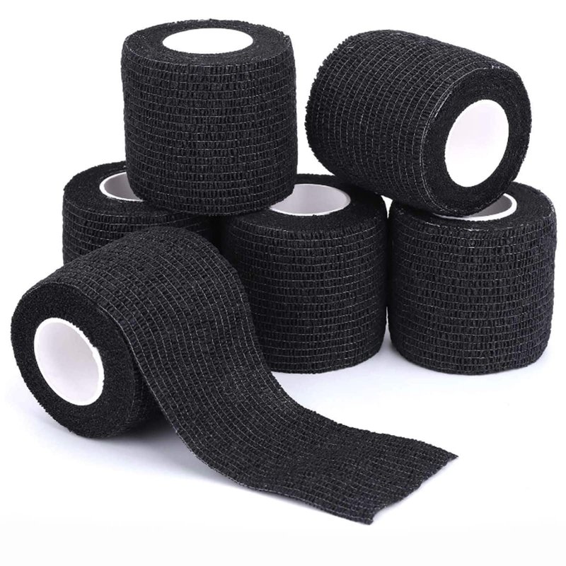 6pcs Black Disposable Self- adherent Grip Cover Tape Bandage Roll