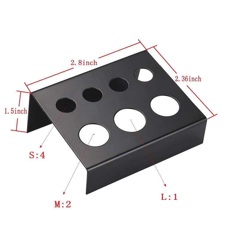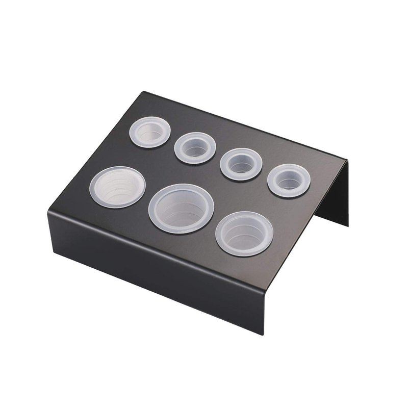 2.Tattoo Ink Cap Stand craftsmanship, It can hold 7 ink cups, including 4 small ink cups, 2 medium ink cups and 1 large ink cups.