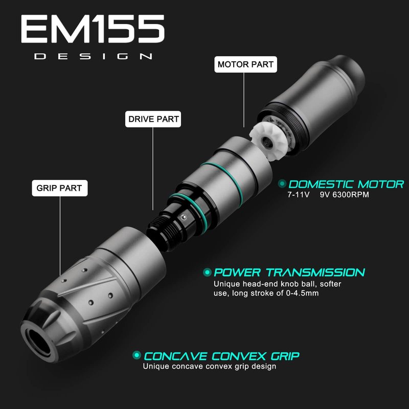 Tattoo Kit Tattoo Gun Wireless Rotary Tattoo Machine with Tattoo Power Supply 1600mAh LCD digital Lithium Tattoo Battery Complete 10Pcs Cartridge 14 inks EM155TI201-7