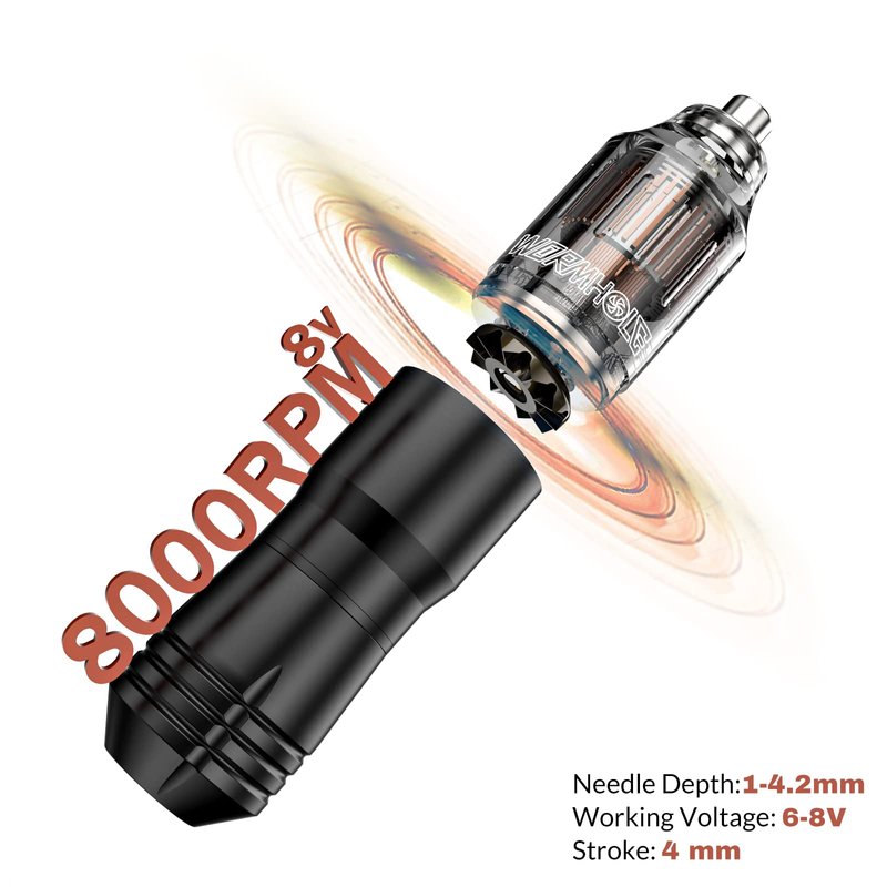 - 🖊️NEWEST DESIGN: 1 piece tattoo pen with RCA interface, that runs smoothly and almost silently, which can meet all your tattoo needs. The transparent pen body helps you see the motor in action. Needle protrusion: 1-4.2mm. Length of the stroke: 4mm. Working voltage: 6-8V. The tattoo machine is made from premium aluminum alloy, has exquisite workmanship, features a powerful motor and an advanced gear system, continuous operation not hot, and low noise.