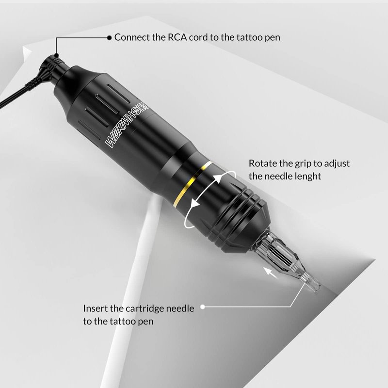 - 🎁COMPLETE TATTOO KIT: The Wormhole tattoo kit includes a tattoo pen with RCA cord, tattoo power supply, foot pedal, 6 color tattoo ink, 2 transfer paper, 2 self-adhesive bandage, 20 tattoo cartridge needles, 40 tattoo ink caps with base, 1 tattoo ointment, 1 clip cord sleeve, 1 pair disposable glove, 1 tattoo practice skin, 1 user manual. A very perfect combo for beginners.
