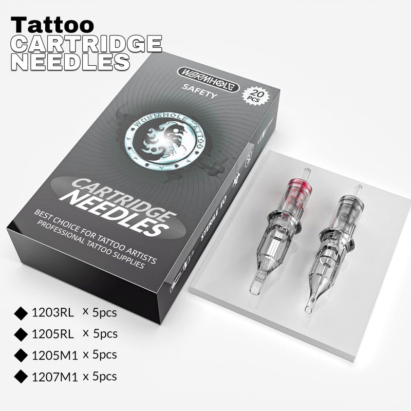 - 💯CARTRIDGE NEEDLES: 20pcs Wormhole tattoo cartridge needles(5 × 1203RL, 5 × 1205RL, 5 x 1205M1, 5 x 1207M1) to provide you with tattoo accessories to complete more and better tattoo works.