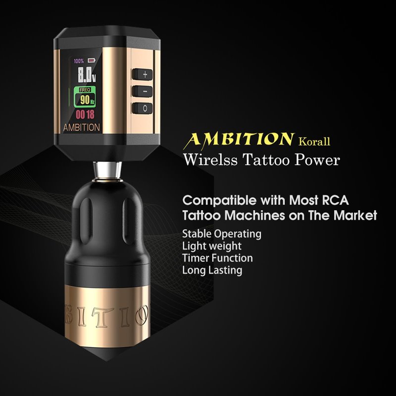 - Convenient Design: Ambition power is one of the lightest and smallest battery packs on the market, easy operate, tattoo battery packs are impressively powerful with long work life, nice, smooth power that support all day work! Compatible with most brands of tattoo machines (with an RCA connection).