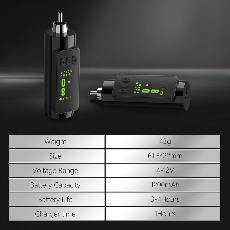 - Package Include:1Pcs wireless tattoo power, 1Pcs tattoo power cable,1Pcs storage zipper box