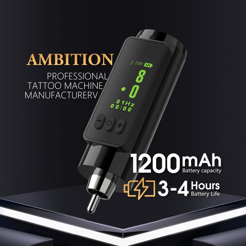 Tattoo Power Supply - Ambition Mini Wireless Portable RCA Tattoo 1200mAh Battery Pack with LED Digital Display for Rotary Tattoo Machine
