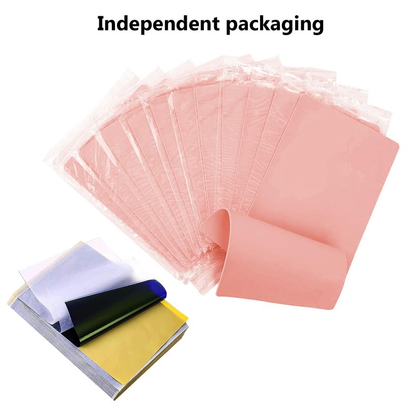 - 【4 LAYERS TRANSFER PAPER】4 ply transfer paper, the first page is white master sheet which the design is applied, second page is semi-transparent protective tissue to be removed before use, third page is blue carbon page, the last page is yellow backing sheet.