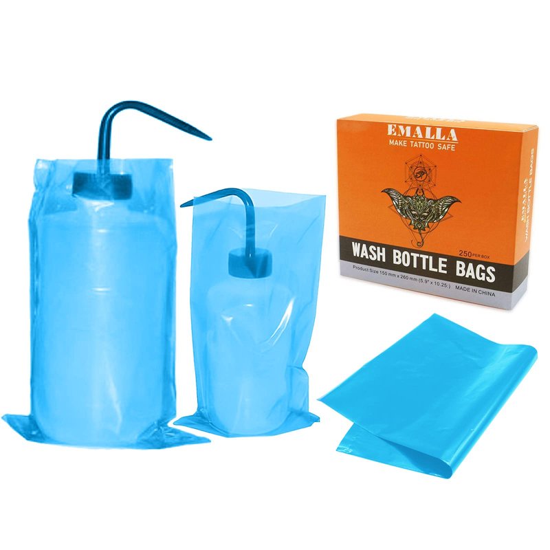 Tattoo Wash Bottle Bags, Usiriy 250pcs Wash Bottle Covers Sleeves Disposable Squeeze Bottle Bag Cover Tattoo Bottle Bags Blue 6 X 10 Inch Cleaning Supplies