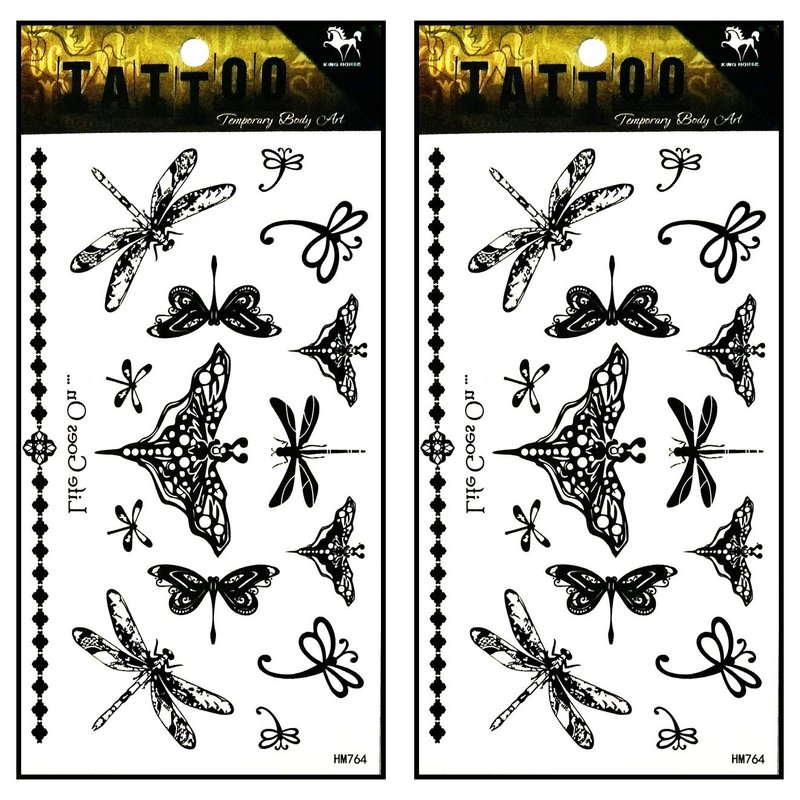 Tattoos 2 Sheets Butterfly dragonfly Vine Chain Necklace Art Fantasy 3D Tattoo Waterproof Stickers Removable Temporary Body Arm Fake Art Sticker Party