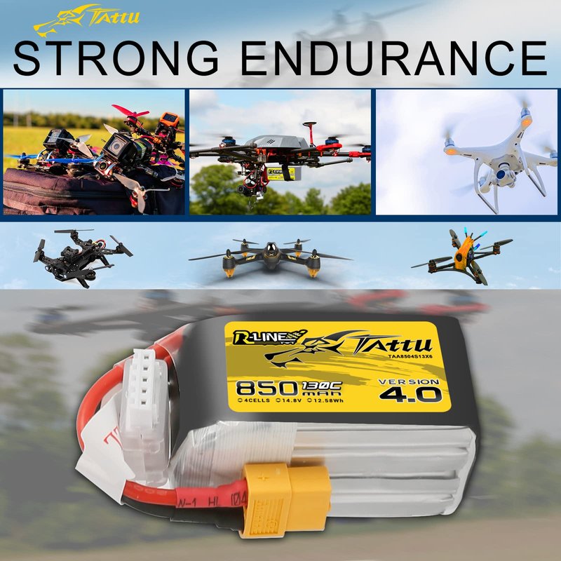 - Application: Tattu 4S 850mAh Lipo battery specially compatible with 2.5,3,3.5 inch FPV Quad Racing