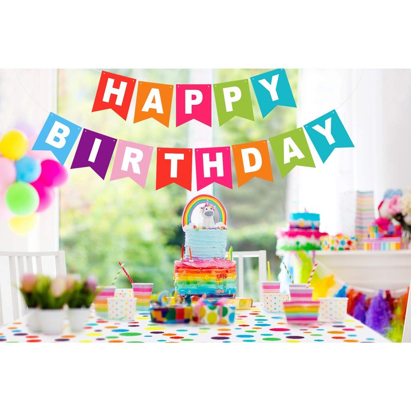- Size: the polka dot tablecloth is 130 x 180 cm, birthday banner is 13 feet long with 14 flags, each flag measures 5.1 x 7.1 inches (WH), letters all are on one rope; The color of tablecloth matches the banner, vibrant color is matching pennant, cupcake liner, cupcake topper and so on