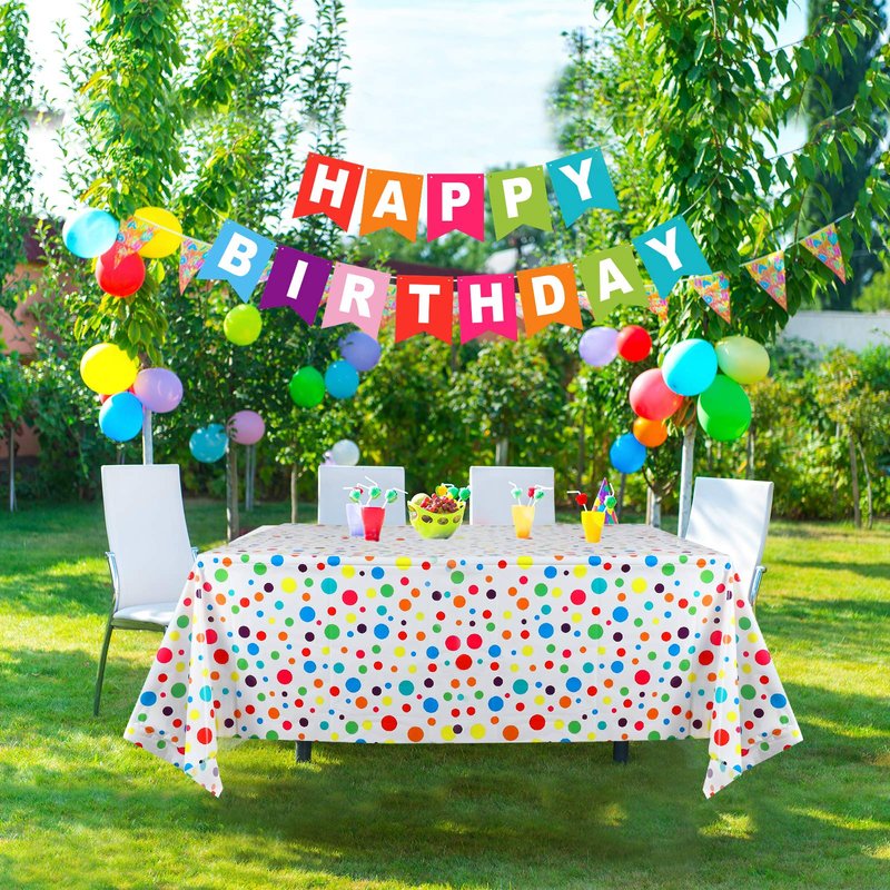 - Package includes: one package includes 2 pieces of plastic polka dots tablecloths and 1 piece happy birthday banner, bright and vibrant color making your birthday party more wonderful as a decoration