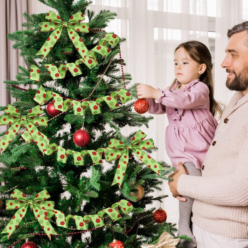 - Reliable to use: these green red dot ribbons are made of nice burlap, wrapped with iron wire, reliable and quality in material, hard to fade or crinkle, easy to tear, no odd smell, with wired edge, firm and stable in stitching to protect the ribbon from tearing off, comfortable and soft, can serve for a long time