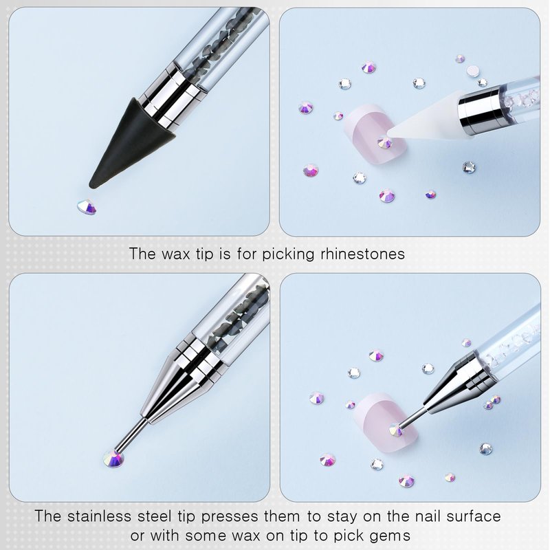 - Double Head Rhinestone Picker: the wax tip is for picking rhinestones and the stainless steel tip presses them to stay on the nail surface or with some wax on tip to pick gems, meet different needs during your crafts
