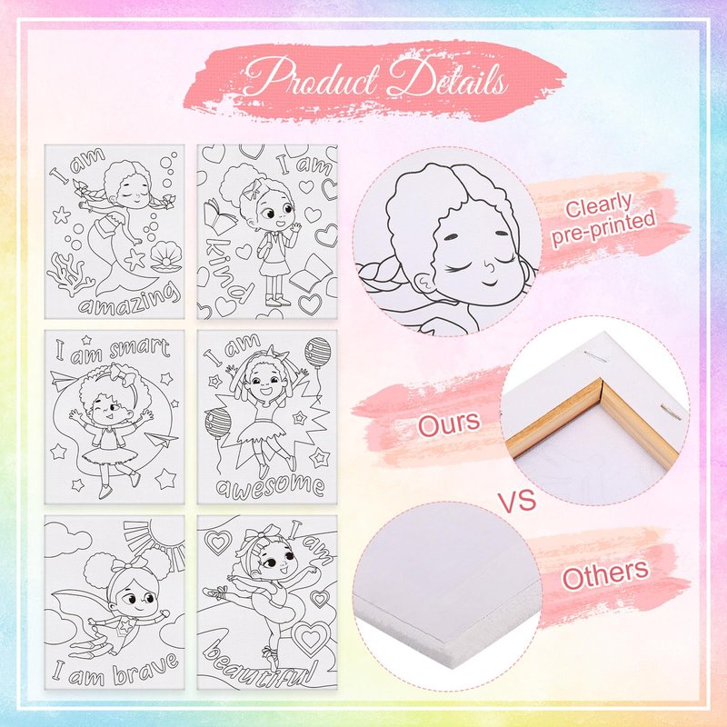 - Package Includes: you will receive 6 pieces of pre drawn canvases with different patterns, with back stapled to a 5/8 inch wide wooden frame, which allow you to draw with your preferences or our picture colors and share with your friends