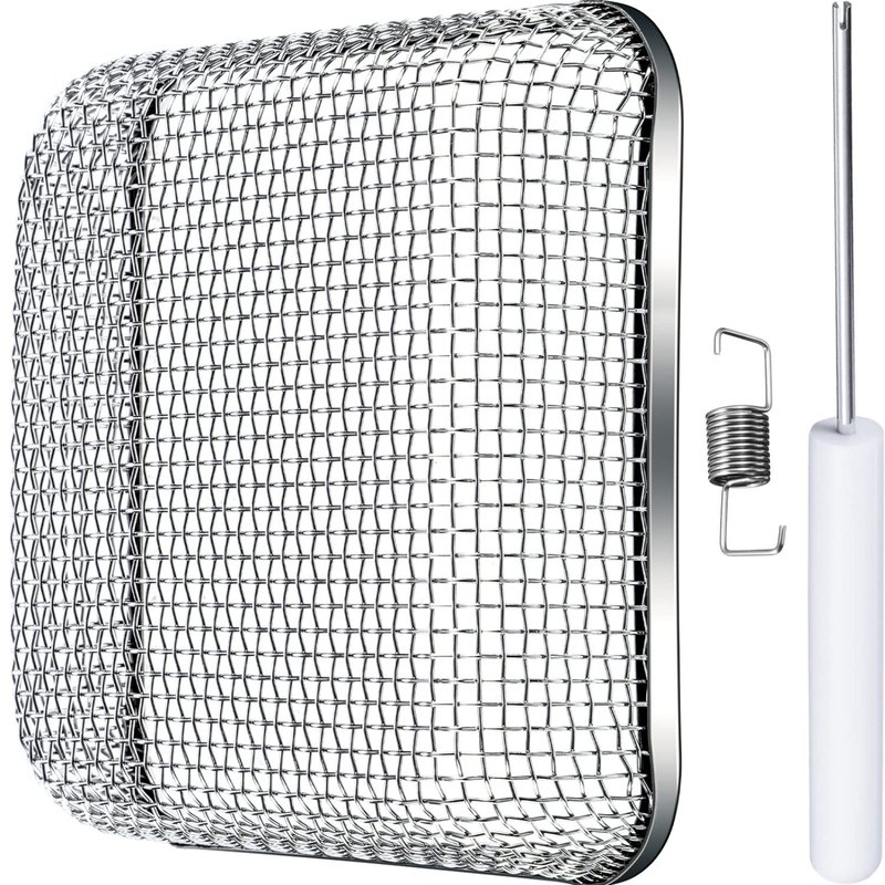 Flying insect screen RV furnace vent cover water heater vent cover stainless steel mesh with installation tool (4.5 x 4.5 inch)