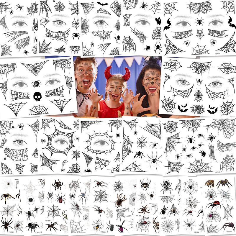 - 【Multiple use】 These Halloween spider face tattoos are suitable for club nights, Halloween, gatherings, daily wearing, going shopping, beach party, pool party, concerts, cosplay party, birthdays, spider-themed party and so on, which will help your draw other's attention easily, can also be applied as a photo prop, helping you take many cool photos.