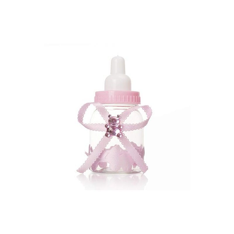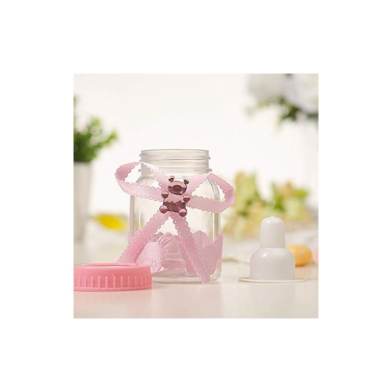 Tayarana 3.5 Inches Baby Bottle Shower Favor,Mini Plastic Candy Bottle,Baby Shower Supplies Boy Girl Newborn Baby Baptism Birthday Party Decor (2 Dozens, Pink ornamented)