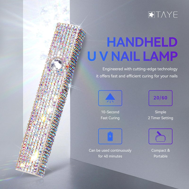 TAYE Handheld UV Nail Lamp, UV Light for Gel Nails, Portable Mini Nail Light, Gel Nail Stickers for Fast Curing, Gel Nail Polish USB Nail Dryer for Home DIY Manicure Nail Art, AB Diamond