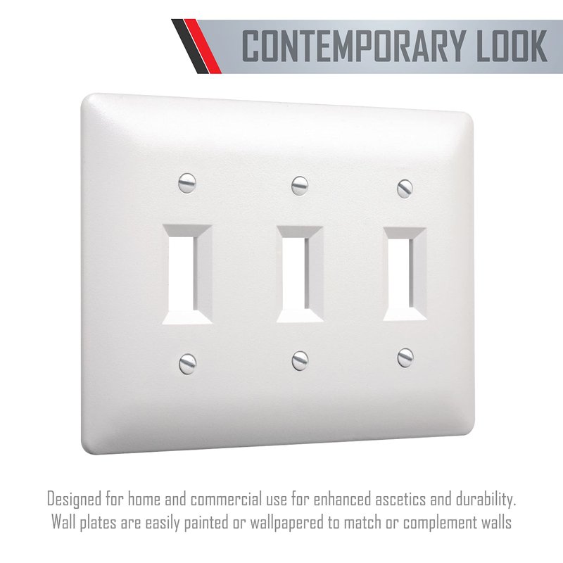 TayMac 4440W Paintable Triple Toggle Light Switch Wall Plate Cover, White, 3-Gang