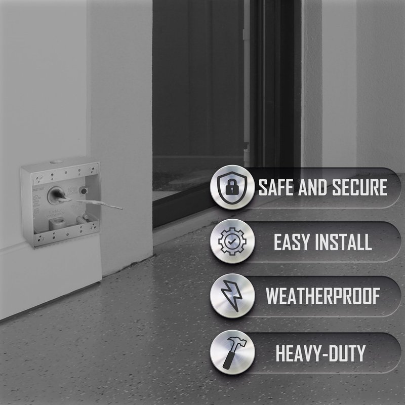 - Closure plugs, mounting hardware, installation instructions and ground screw included