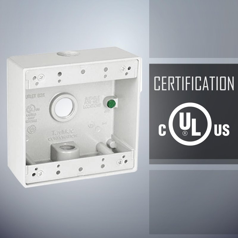 TayMac DB375WH 3/4-Inch 3 Hole 2-Gang Weatherproof Box, 3/4-Inch Outlets, White