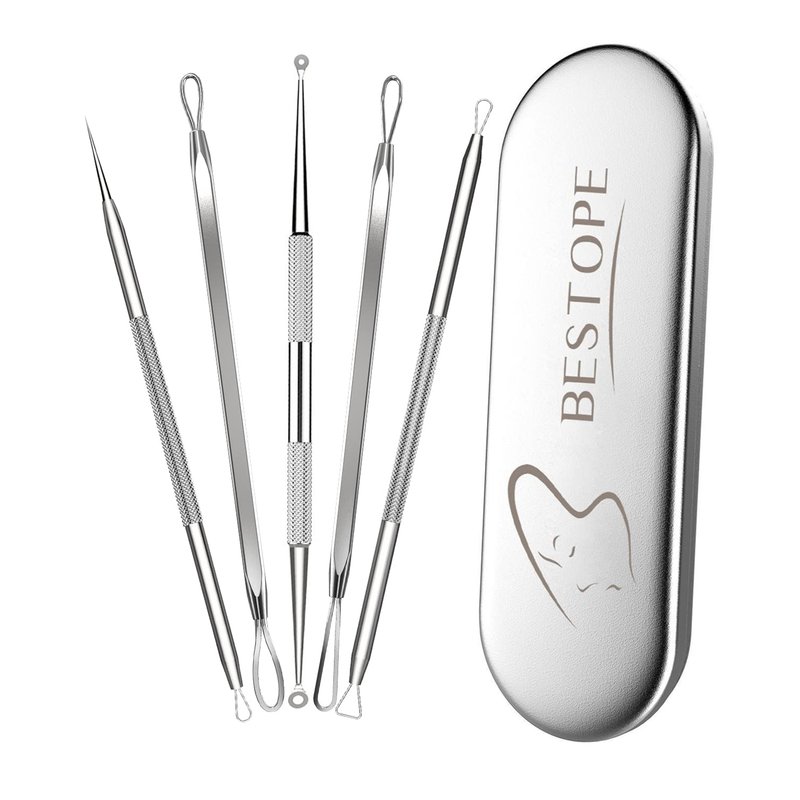 - Double-head Blackhead Remover Tools : The 5Pcs pimple popper tool kit helps to extract different shape blackhead, pimple,acne, comedone,whitehead easily.
