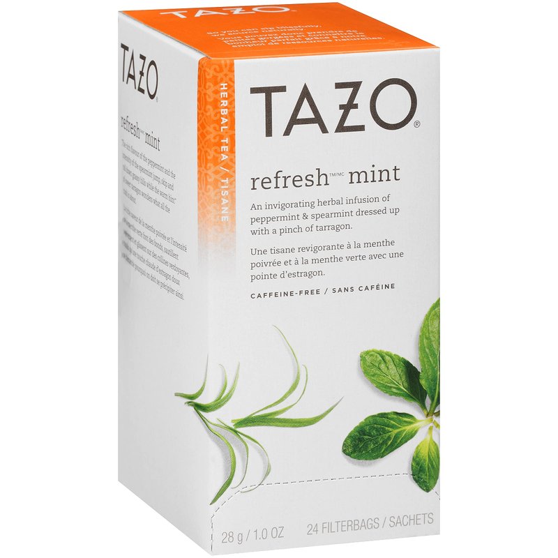 - Package includes one box of 20 individually wrapped tea bags of Tazo Refresh Mint Herbal Tea