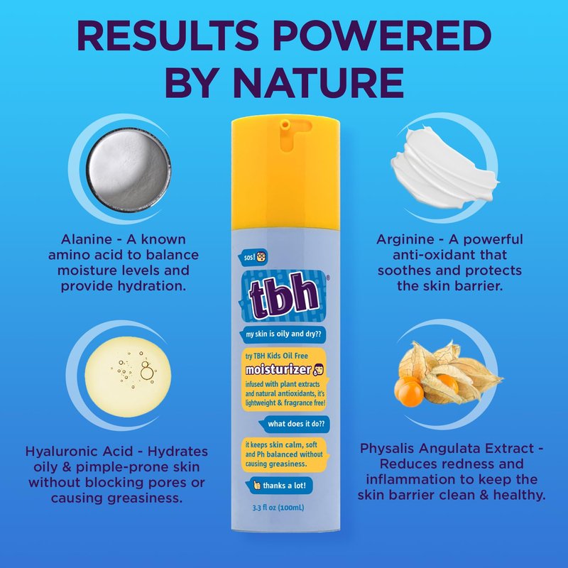 TBH Gentle Hydrating Face Moisturizer for Kids, Tweens, and Teens with Sensitive Dry Oily Skin - Shine Free Face Moisturizer for Girls and Boys - Sulfate Free, Paraben Free - Travel Friendly - 3.3 Oz