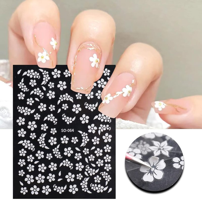 - 【Package Contain】You will get 8 sheets delicate white flower nail stickers, each sticker contains a different shaped flower pattern for you to use and replace in daily life. The pretty white floral nail sticke patterns give you different, let you enjoy manicure time.
